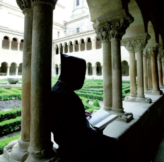 Nos bajamos del coche y entramos en el ‘El Escorial riojano’. Un silencio absoluto acompañaba nuestros pasos mientras nos dirigimos al lugar con más encanto del milenario edificio, la biblioteca emilianense. Abrimos el inmenso portón que da acceso a este refugio del conocimiento custodiado por Juan Bautista Olarte, archivero del monasterio durante más de veinte años y gran conocedor de sus secretos. Mientras conversamos, nos fijamos en las estanterías que, además de sostener más de 300 documentos medievales, albergaron durante mucho tiempo las famosas Glosas Emilianenses del Códice 60, actualmente custodiadas por la Real Academia de la Historia (Madrid), y en las que se hallan, supuestamente, las primeras palabras escritas en castellano: “Datan de mediados del siglo XI y su tamaño es pequeño y constan de tres partes, sólo en la primera y en la última aparecen las glosas. Estas son las primeras evidencias del castellano”, asegura el Padre Olarte.