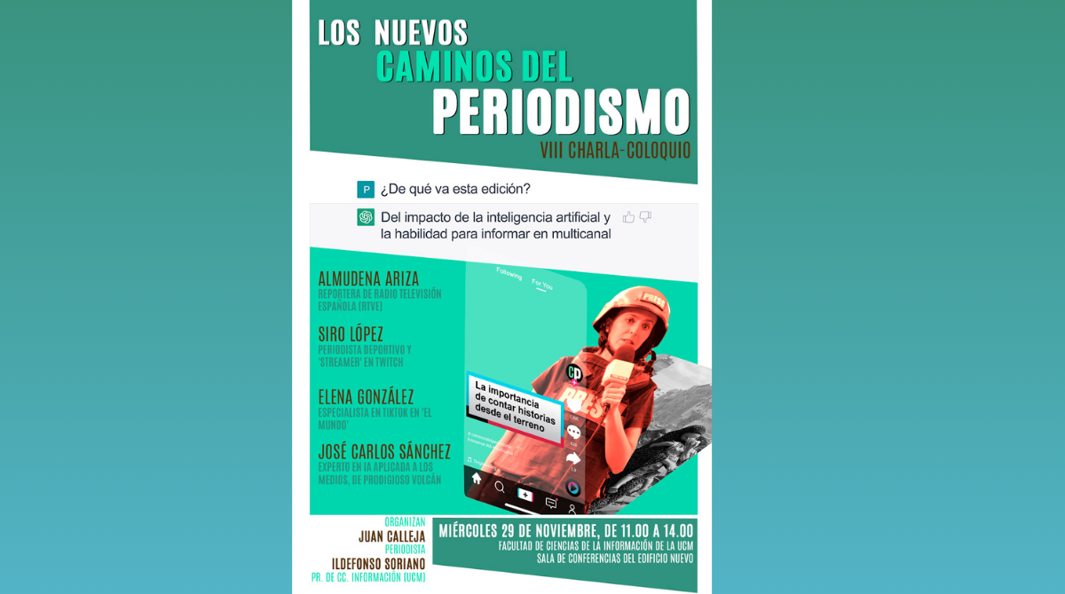 Las intervenciones, que tendrán lugar de 11.00 a 14.00 en la Sala de Conferencias del Edificio Nuevo, pondrán el foco en el impacto de la inteligencia artificial en los medios así como la habilidad para informar en multicanal: contar la actualidad a través de TikTok, el periodismo streamer en canales como Twitch, la incidencia de la inteligencia artificial en los medios o el oficio del reportero en el terreno, hoy.